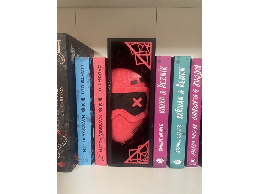Temný, výrazný a nepřehlédnutelný kousek do knihovny, který okamžitě přitáhne pozornost. Kombinace černé, červené a ikonických detailů vytváří silný vizuál inspirovaný estetikou knihy Caught Up.