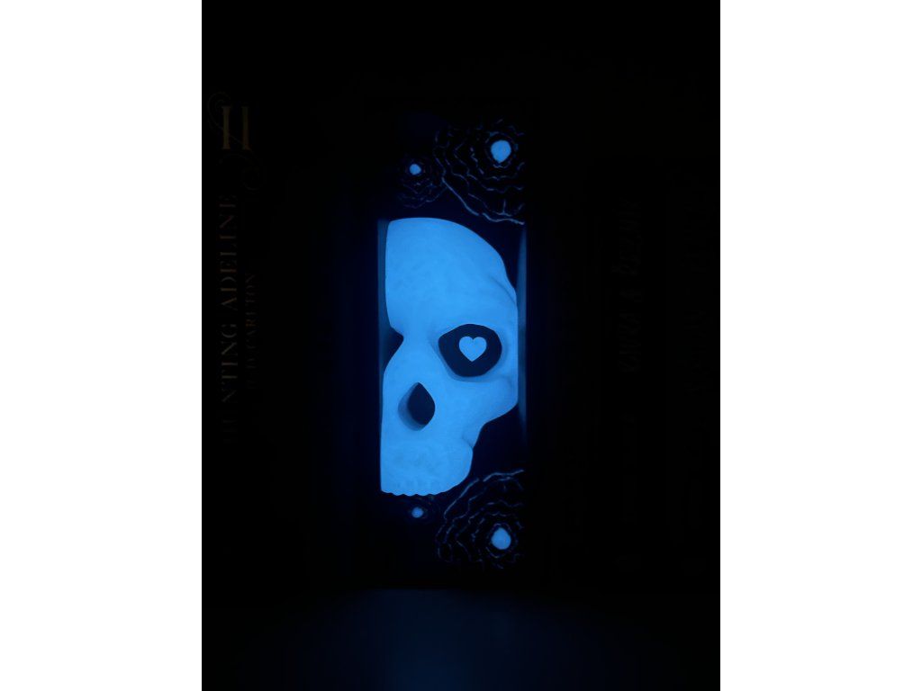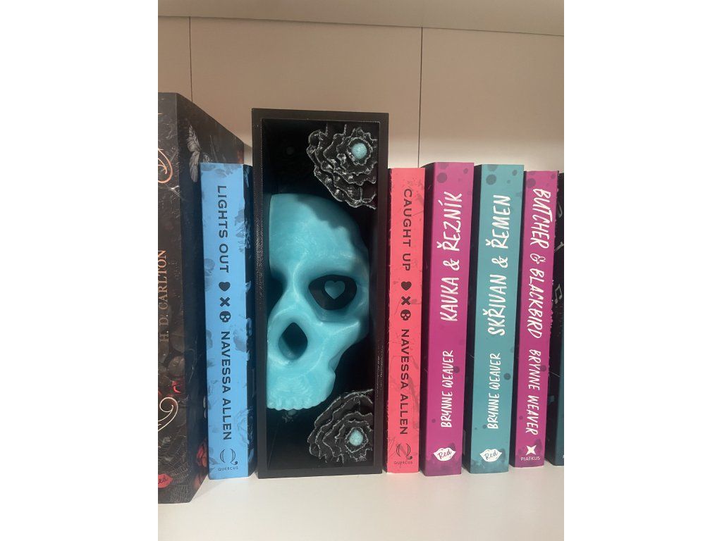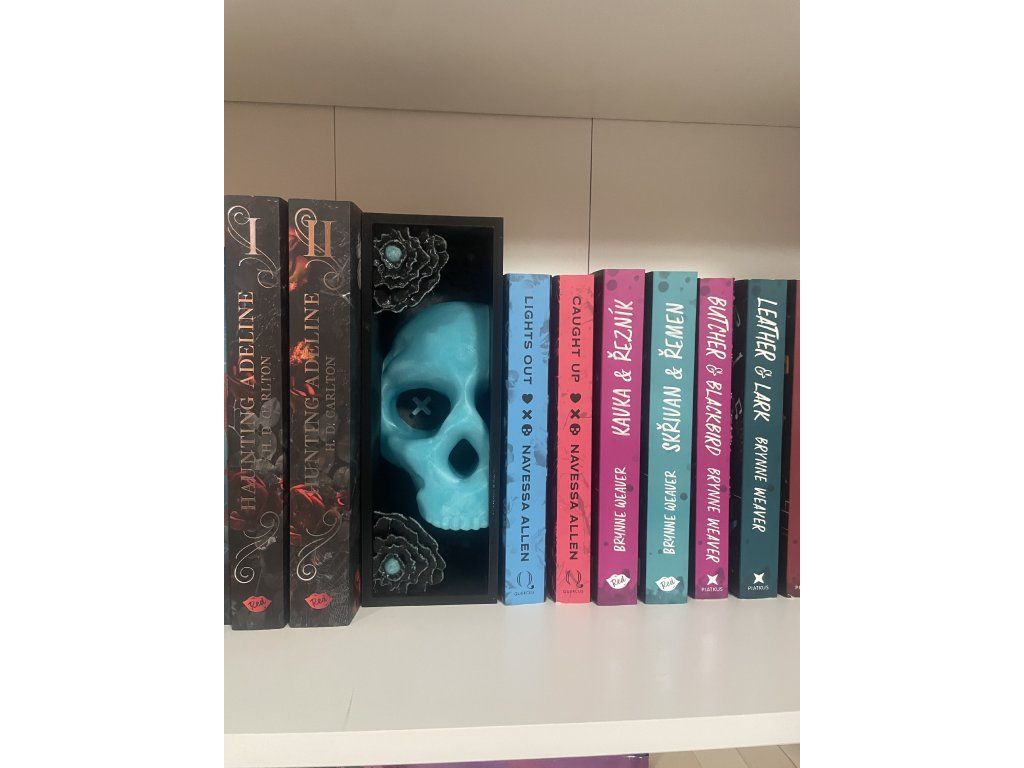 Tento dark romance booknook v knihovně nepřehlédnete. Spojení temné elegance, výrazného detailu a světelného efektu vytváří dekoraci, která mezi knihami působí jako malý artefakt z jiného světa.